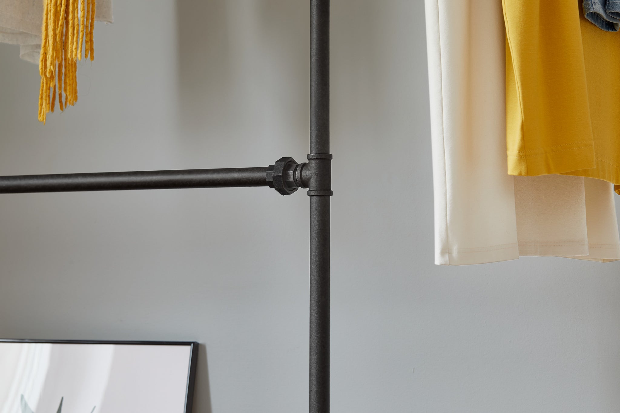 With PIPE, you can keep your clothing organized and always within easy reach. The modular system is particularly robust and unique thanks to its stylish loft aesthetic. Whether freestanding or wall-mounted, PIPE offers flexible usage options and high stability. The real wood veneer shelves add natural accents and create the perfect contrast to the urban loft design—providing space for shoes, bags, and accessories.