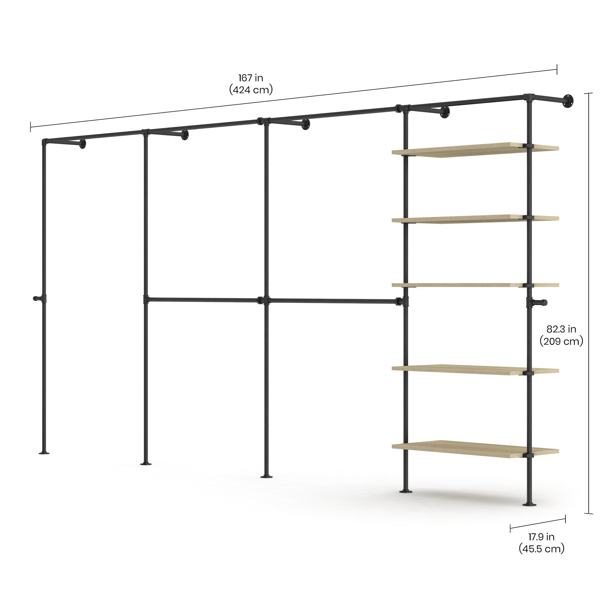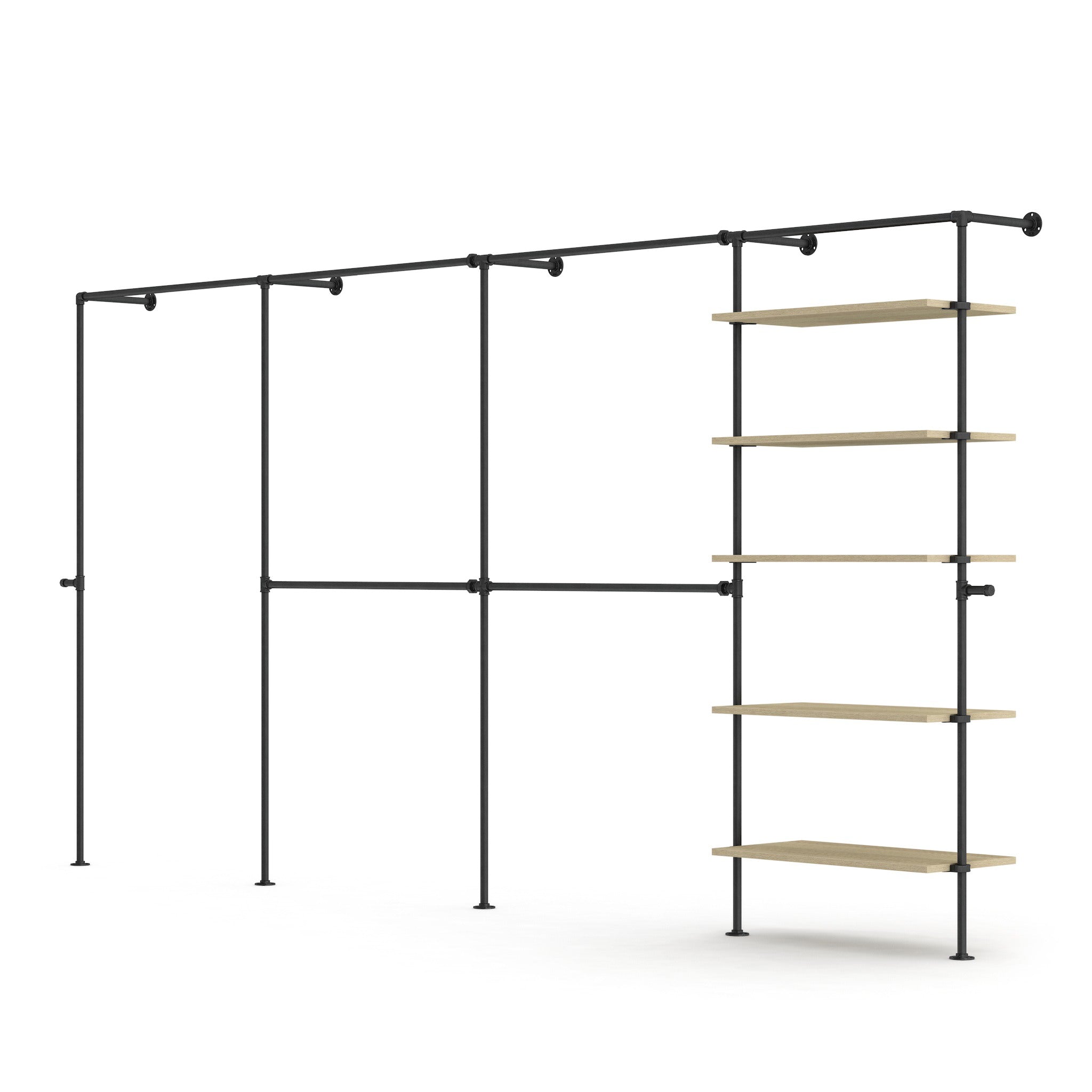 With PIPE, you can keep your clothing organized and always within easy reach. The modular system is particularly robust and unique thanks to its stylish loft aesthetic. Whether freestanding or wall-mounted, PIPE offers flexible usage options and high stability. The real wood veneer shelves add natural accents and create the perfect contrast to the urban loft design—providing space for shoes, bags, and accessories.