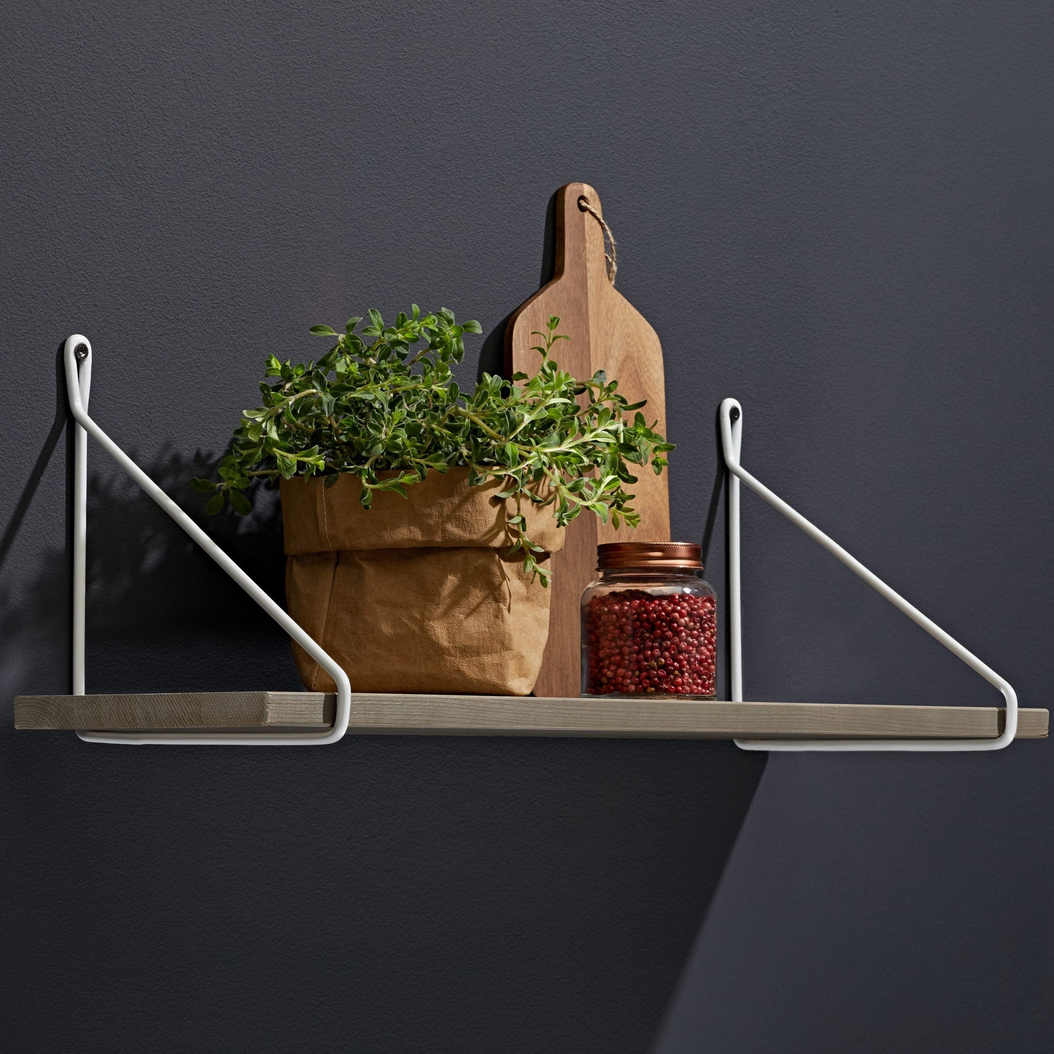 The FIL bracket is a slim, elegant design that wraps around the shelf for added support. Use this as a bookshelf or spice up the kitchen with this vintage, contemporary shelving bracket. Create an eye-catching place to store keys or mail in the hallway. The steel wire material creates a chic, timeless design.
