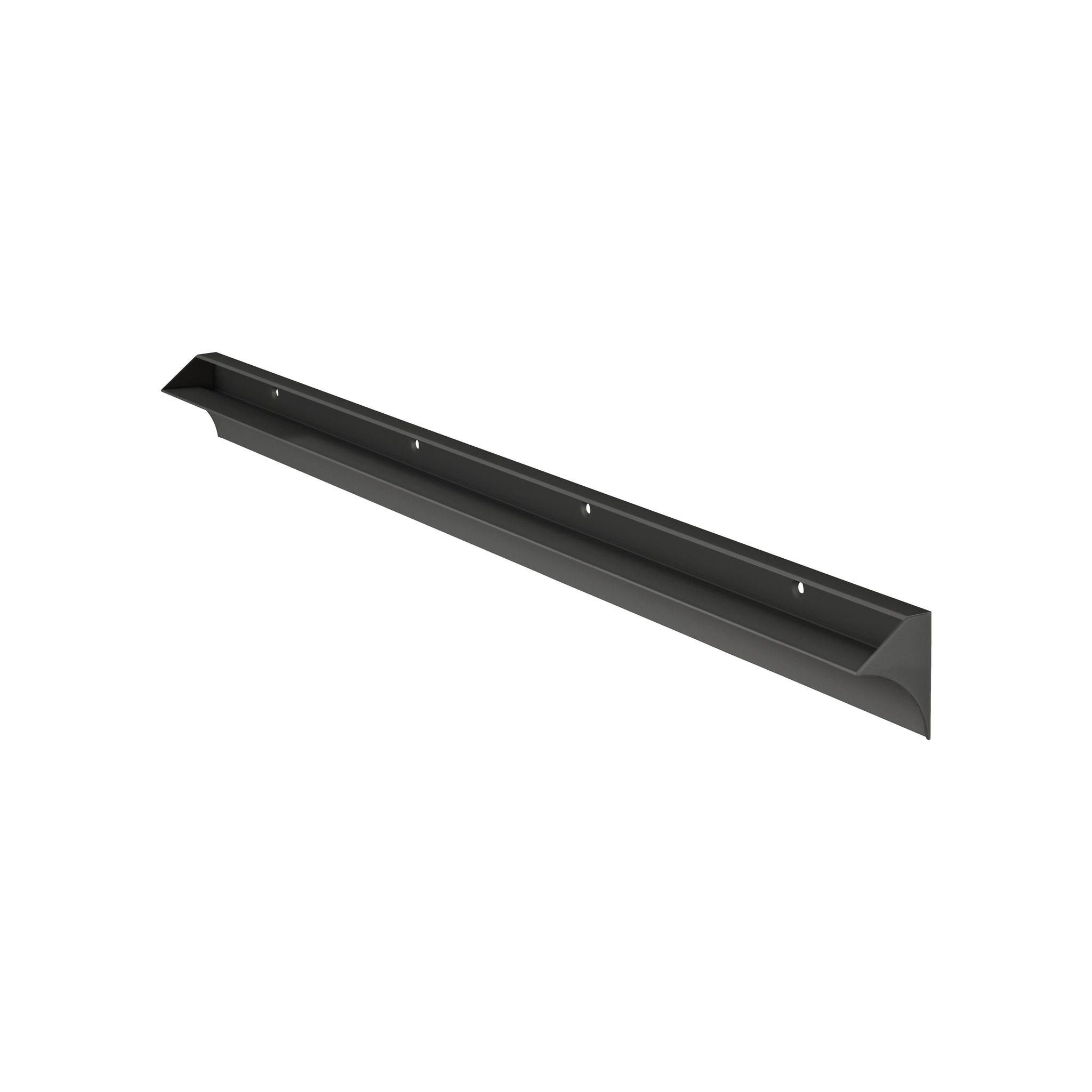 The RAIL bracket is the perfect minimalistic bracket for supporting wood shelves. The support is specifically designed for shelves that are extra deep or heavier. The aluminum material is strong and versatile. Secure the bracket to the wall with the included screws and anchors. Adhesive pads are also included to secure the shelf board to the rail.